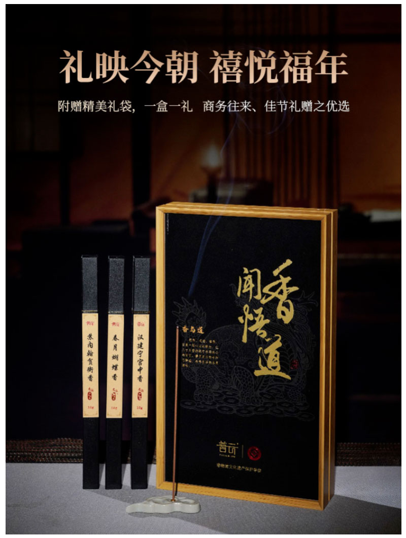 Product : Puyun / Incense and Tao Medium Density Fiberboard Gift Box Set - (Su Nanhua + Han Jianning + Butterfly Incense 10g each) with gift bag